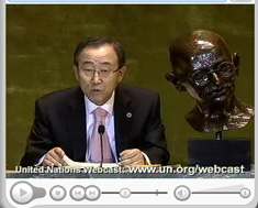 The United Nations International Day of Peace first time ever to reach a Billion people, Secretary-General Ban will ring the Japanese Peace Bell at UN Headquarters along with Michael Douglas, Jane Goodall and Midori Goto